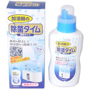「除菌タイム 加湿器用 液体タイプ 500ml」は、加湿器の消毒・除菌剤です。加湿器給水トレーの雑菌を除去すると同時に噴出口から出るミストをしっかり除菌します。液体タイプ。